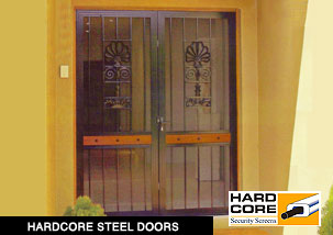 Hardcore Security Screens are a stylish alternative to normal security grilles. They have the traditional look of wrought iron, but unlike steel, they won't rust or corrode as all exposed surfaces are aluminium, treated with a chromate conversion process and then powder coated in a colour of your choice. All bars have a unique high tensile steel core, fully welded - not riveted - for maximum strength and are fitted with a triple point lock for optimum security. |